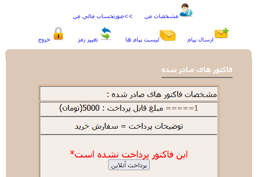 یک نمونه سایت طراحی شده برای درگاه پرداخت آنلاین مشاغل